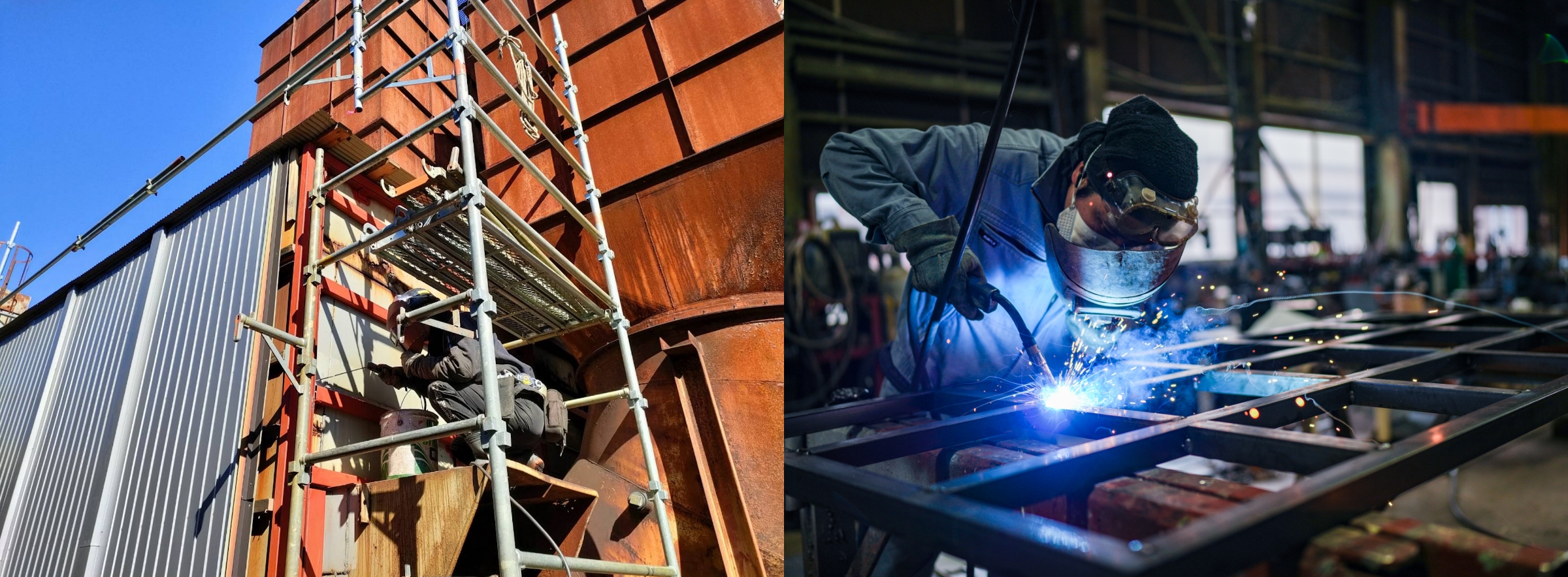 自社工場での製缶加工から、現地での据付・溶接・鍛冶工事までを一貫して行い、